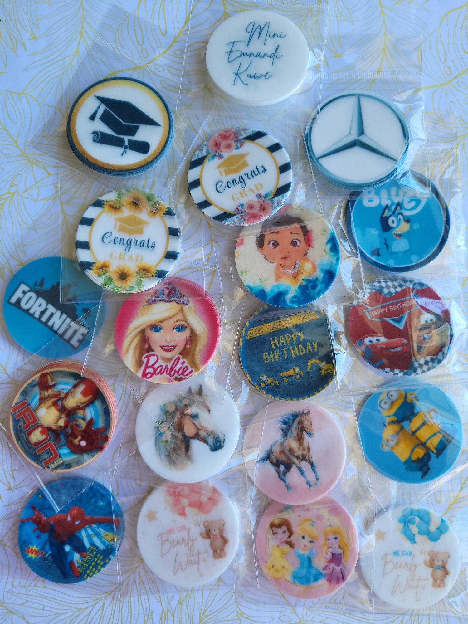 Edible Wafer Paper Pre-cut Toppers Each pack consists of 10 round toppers....